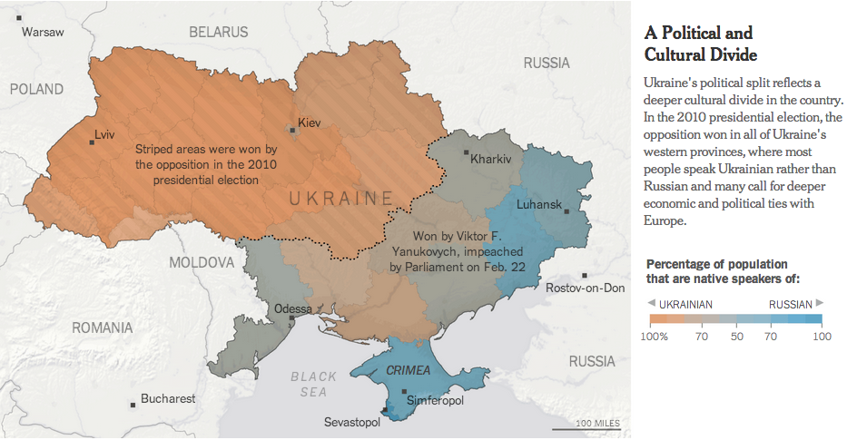 * Die Russen innerhalb der Ukraine fühlen sich bedroht und sehnen russisches Militär herbei, das sie beschützt. Durchaus verständlich und ein gutes Argument für Putin, Truppen in die Krim zu entsenden.